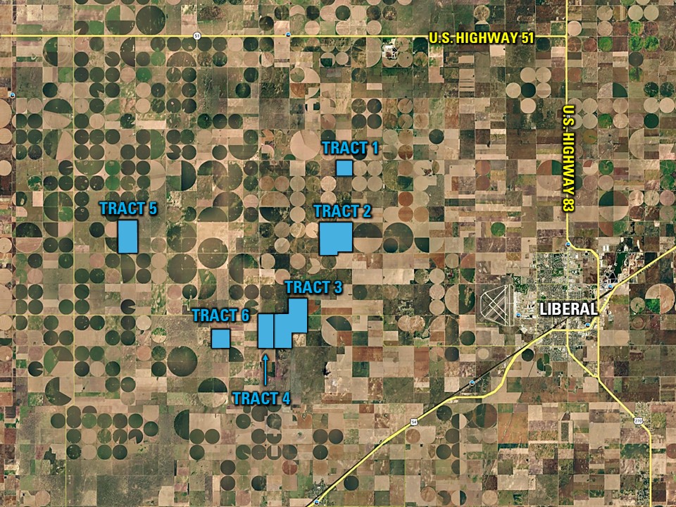 All tracts are conveniently located near Liberal, Kansas, providing excellent access to multiple grain marketing outlets, including ethanol plants, cattle feedlots, and dairies.